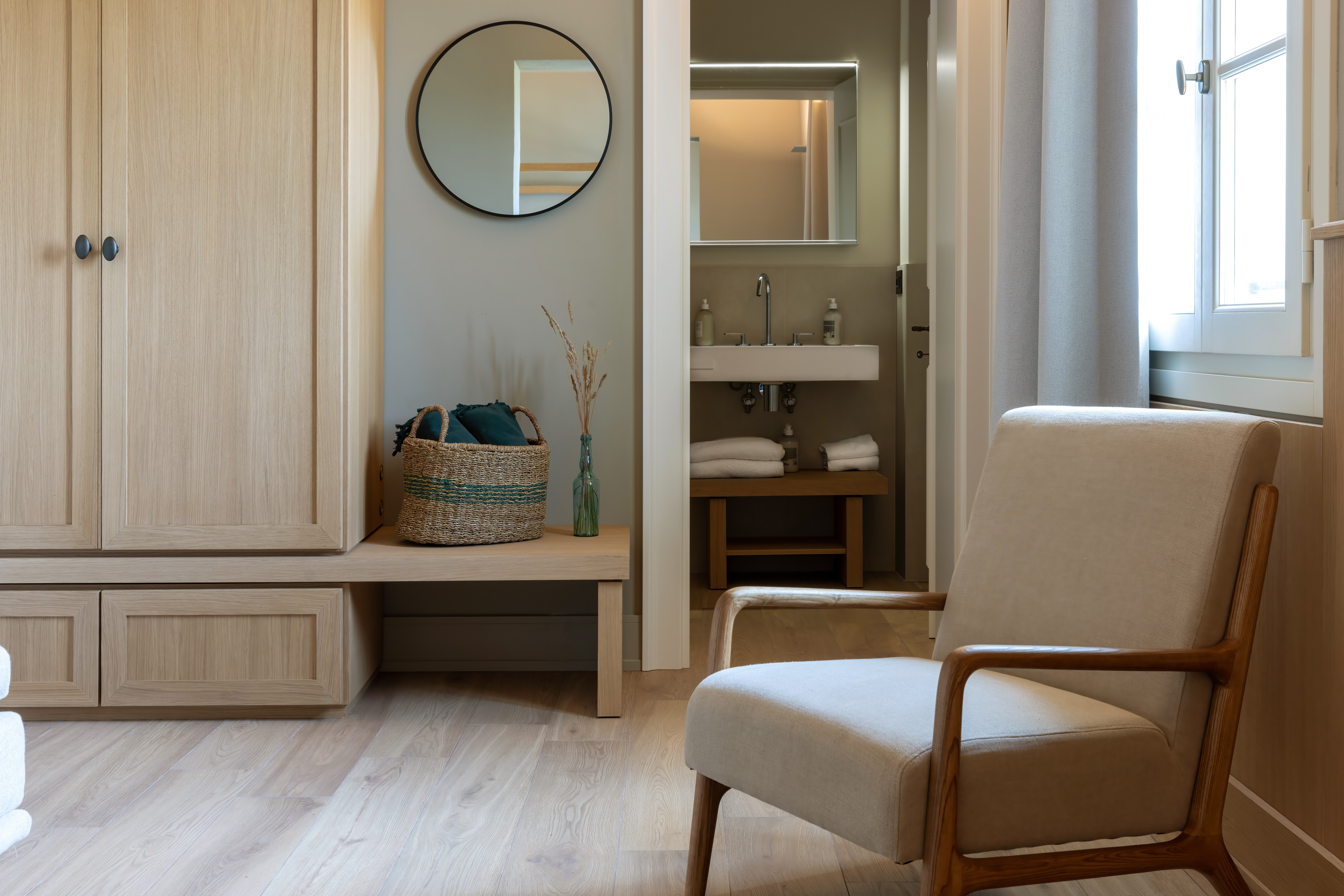 De kamers zijn fris en hedendaags ingericht met natuurlijke materialen, zachte pasteltinten, trendy meubilair en parketvloeren. Alle kamers hebben zicht op het landschap. De badkamers hebben een regendouche en exclusieve badproducten.