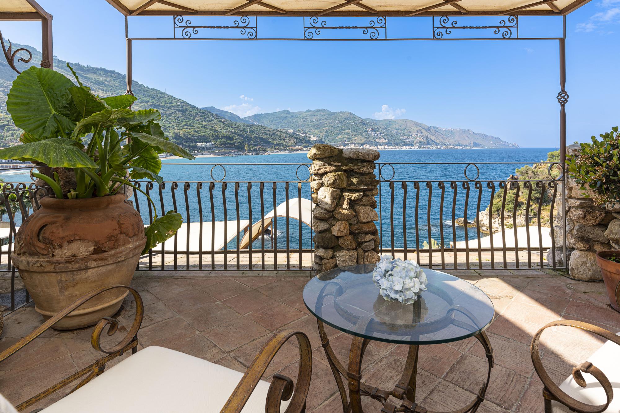 Een panoramisch terras, een bubbelbad en een hammam in de kamer maken de Atlantide Suite tot een van de grootste en mooiste kamers in heel Taormina.