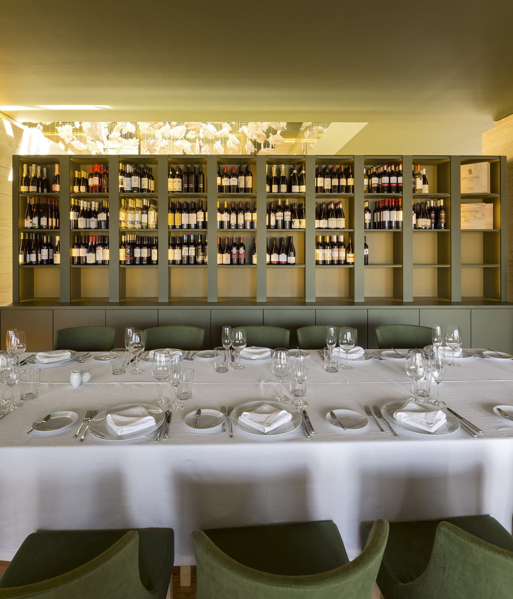 Kies voor de tafel van restaurant Monverde waar je onder de talloze houten bladsculpturen zit.