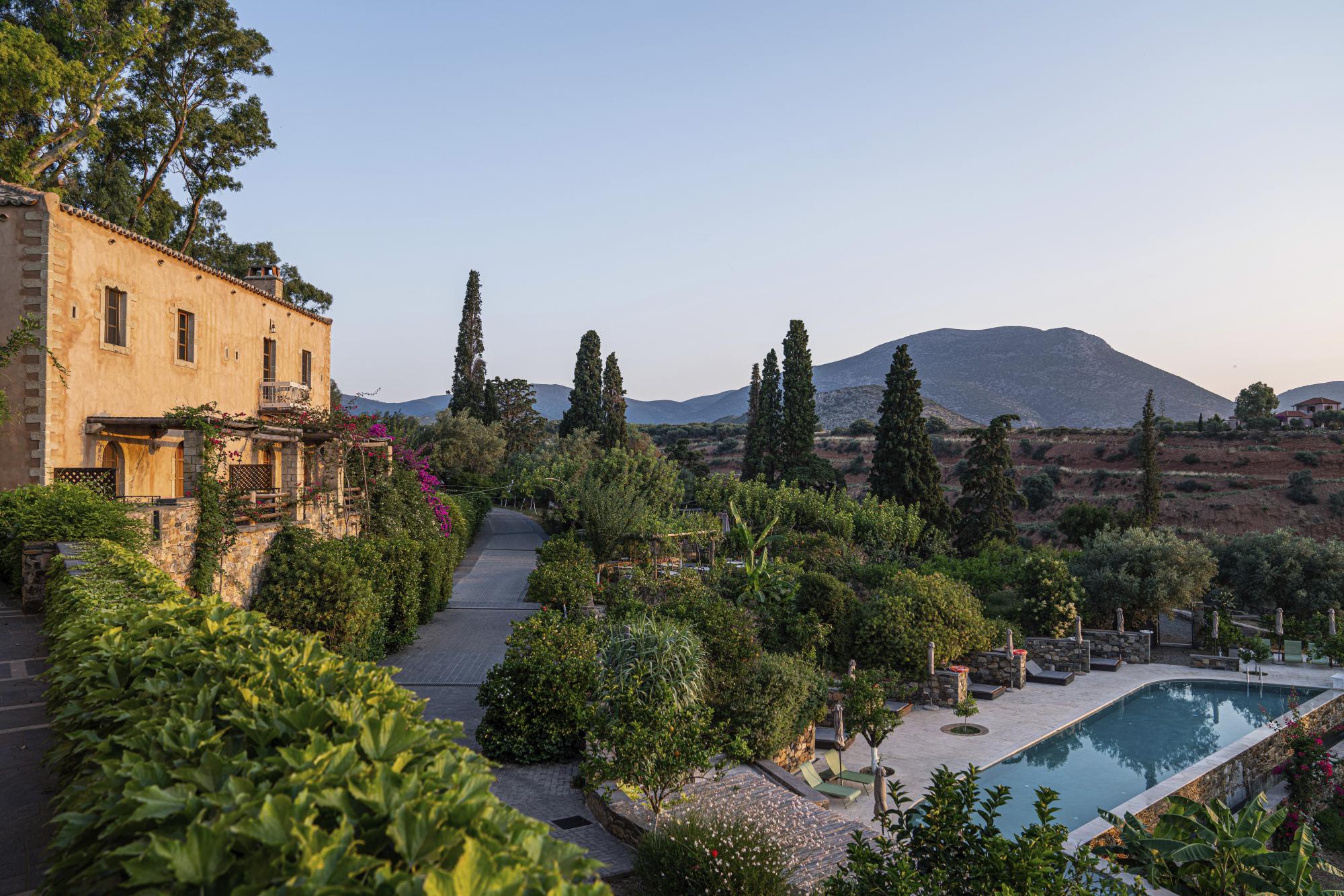 Het hotel is rustig gelegen in Agios Stefanos tegen een heuvel, midden in de wijn- en olijfgaarden en citrusplantages, op ± 1km van de zee en ± 7km van Monemvassía. Mystrás ligt op ± 95km en Pýrgos Diroú (Máni) op ± 115km.