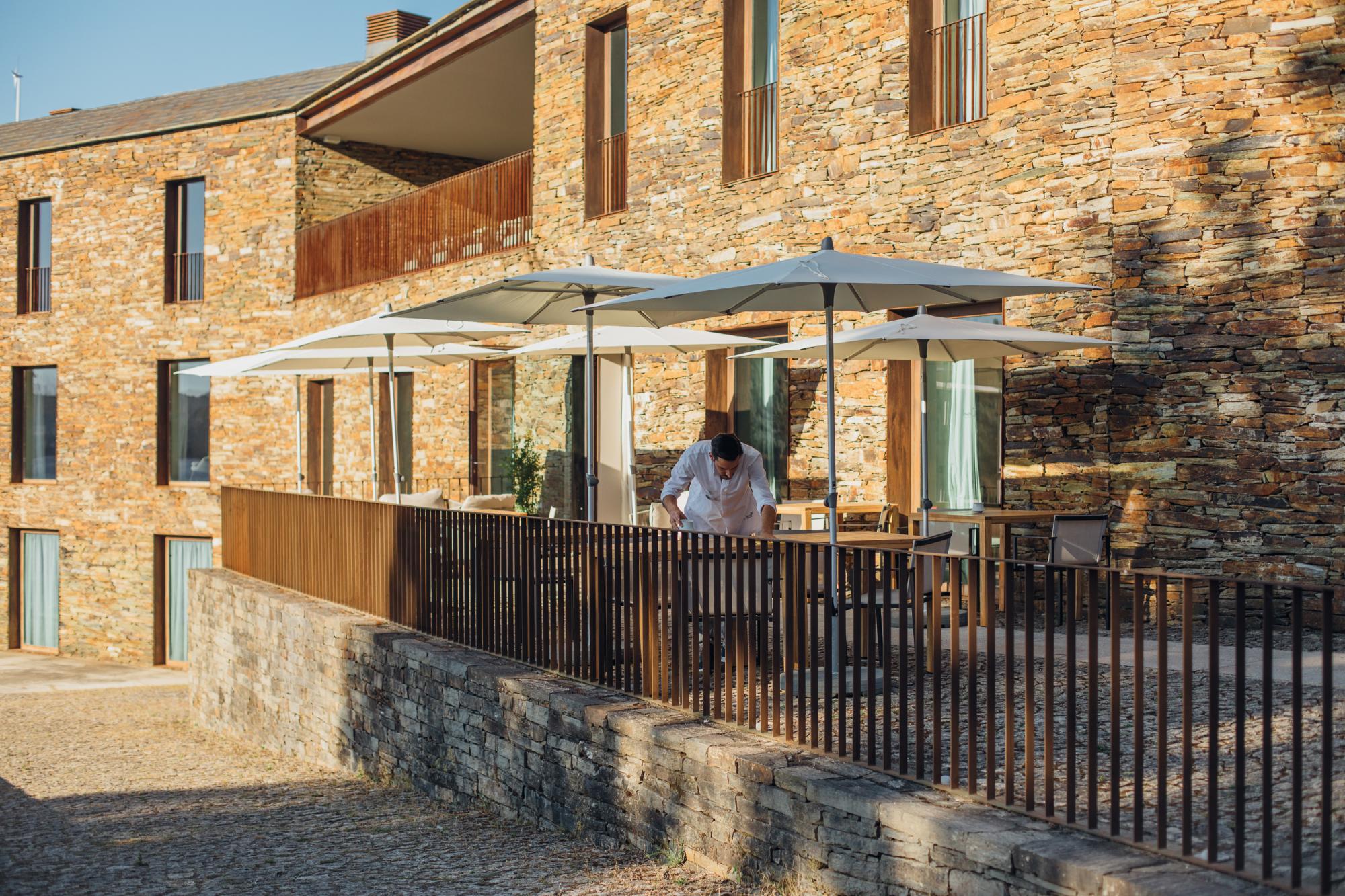 Neem plaats aan een tafeltje op het terras van restaurant Raiva voor een adembenemend zicht op de Douro en de omringende bergen.